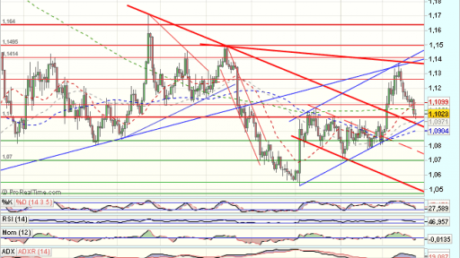 En el medio plazo el Euro – dólar dibuja un doble techo, que fuerza un un impulso bajista todavia vigente.