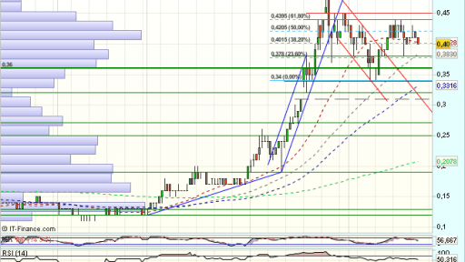 En el corto plazo, se impulsa desde el soporte de los 0,19 euros y supera el 100% de recuperación de todo el impulso bajista previo desde el 2011.
