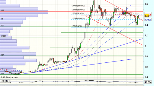 En el corto plazo, se impulsa desde el soporte de los 0,78 euros y supera el 100% de recuperación de todo el impulso bajista previo desde el 2011.
