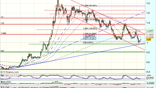 En el corto plazo, se impulsa desde el soporte de los 0,78 euros y supera el 100% de recuperación de todo el impulso bajista previo desde el 2011, hasta encontrar obstáculos en los 1,99 euros, que fuerzan una consolidación, que perfora la media de 200 sesiones.