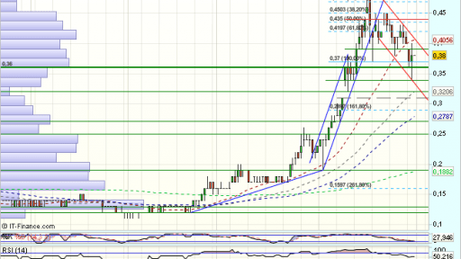 En el corto plazo, se impulsa desde el soporte de los 0,19 euros y supera el 100% de recuperación de todo el impulso bajista previo desde el 2011.
