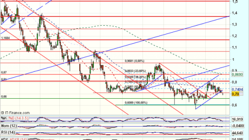 En las últimas sesiones, supera el techo del canal bajista, en un pullback a resistencias en o,97, que fuerzan un impulso a soportes en 0,61, dando paso a un movimiento lateral que rompe al alza hasta la resistencias en 0,81, que fuerzan un trhrowback a soportes, con primeros objetivos en los ……….Sigue en https://www.mercadosencontinuo.es/mapa
