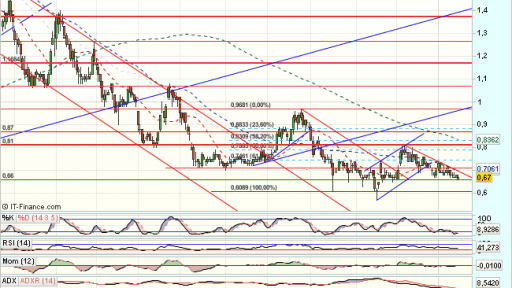 En las últimas sesiones, supera el techo del canal bajista, en un pullback a resistencias en o,97, que fuerzan un impulso a soportes en 0,61, dando paso a un movimiento lateral que rompe al alza hasta la resistencias en 0,81, que fuerzan un trhrowback a soportes, con primeros objetivos en los ……….Sigue en https://www.mercadosencontinuo.es/mapa