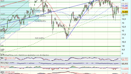 En el medio plazo, Gamesa supera el 100% de recuperación de toda la caída previa desde 2011, hasta resistencias en 16,5, que fuerzan una consolidación.