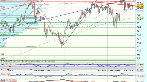 En el medio plazo, Gamesa supera el 100% de recuperación de toda la caída previa desde 2011, hasta resistencias en 16,5, que fuerzan una consolidación.