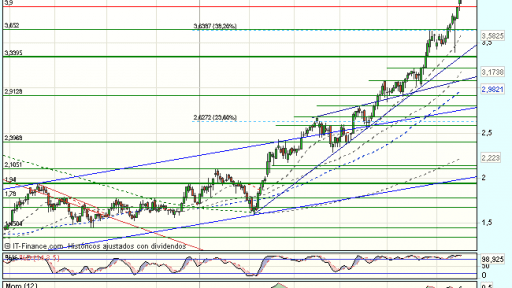 En las últimas sesiones, vuelve a acelerar la tendencia en un impulso alcista, que supera el 38,2% de recuperación de todo el impulso bajista previo desde los 7,25 euros. En la sesión de hoy, a falta de confirmar al cierre, supera la resistencia en los 3,9 euros, abriendo nuevos objetivos en los……….Sigue en https://www.mercadosencontinuo.es/gamesa-analisis-tecnico-29.html