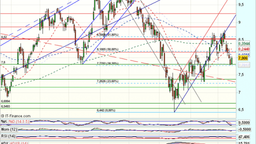 En el medio plazo, Gamesa supera el 100% de recuperación de toda la caída previa desde 2011, en los 7,5 euros que frenan las alzas, dando lugar a una consolidación lateral con techo en los 8,4 euros, que rompe al alza, hasta los 9,9 euros, que fuerzan una consolidación.