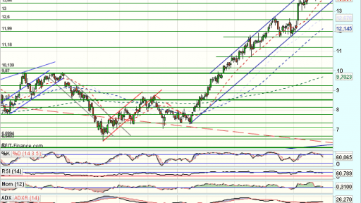 En el medio plazo, Gamesa supera el 100% de recuperación de toda la caída previa desde 2011, en los 7,5 euros que frenan las alzas, dando lugar a una consolidación lateral con techo en los 8,4 euros, que rompe al alza, hasta los 9,9 euros, que fuerzan una consolidación.