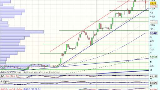 En las ultimas sesiones, tras una consolidacion  lateral, inicia un nuevo impulso alcista, que supera máximos previos,  hasta los 14,10  euros, que provocan un throwback hacia soportes en los  12,3 euros, desde donde rebota en un nuevo impulso alcista, con primeros objetivos en  los …..Sigue https://www.mercadosencontinuo.es/gowex-analisis-tecnico-2.html