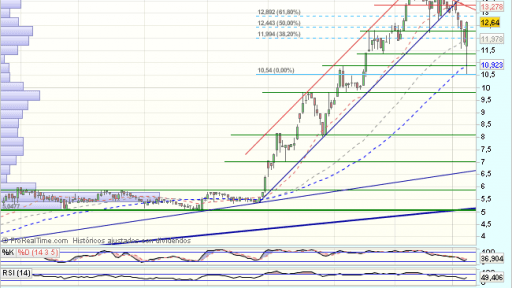 En las ultimas sesiones, tras alcanzar el techo del canal alcista desarrolla un impulso bajista secundario, que perfora la base del canal, y los minimos previos, hasta encontrar soporte en los 10,54 euros, desde donde rebota con fuerza y primeros objetivos en los…..Sigue https://www.mercadosencontinuo.es/gowex-analisis-tecnico-4.html