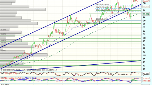 En el corto plazo, va superando máximos históricos, moviéndose a lo largo de un canal alcista de aceleración, que en la sesión de ayer supera máximos históricos previos en 31,82, con un nuevo impulso, que vuelve a poner al valor, en situación técnica de subida libre y en dirección a los……….Sigue en https://www.mercadosencontinuo.es/grifols-de-nuevo-en-subida-libre-analisis-tecnico-2.html