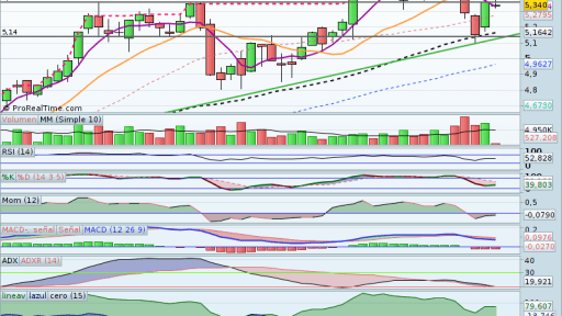 - 14 febrero, 2014 a las 10:27 #36530 Adrian_gciaMiembro Adrian_gciaMiembroTras superar máximos en enero retrocede hasta apoyarse en la directriz alcista, desde donde toma impulso de nuevo, apoyado por el acuerdo entre IBERIA y SEPLA, volviendo a encontrarse en subida libre. Adjuntos:24 febrero, 2014 a las 18:26 #37181 Adrian_gciaMiembro Adrian_gciaMiembroActualización: Tras crear nuevos máximos la semana pasada lleva varios días consolidando posiciones oscilando entre los 5.5 y 5.3 €