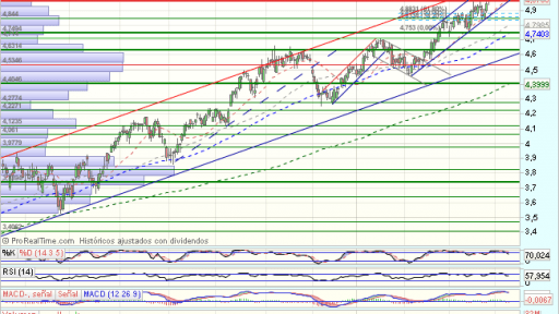 En el medio plazo define el rango lateral como de continuidad alcista, para pasar a moverse dentro de un impulso alcista canalizado.
