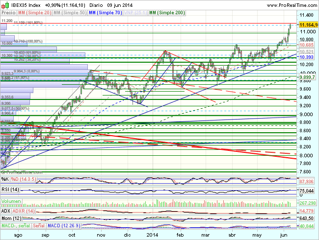 El Ibex, confirma la superacion de la resistencia relevante de los 11.000 puntos, con nuevos objetivos en los 11.210 – 11.500 puntos .