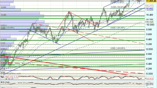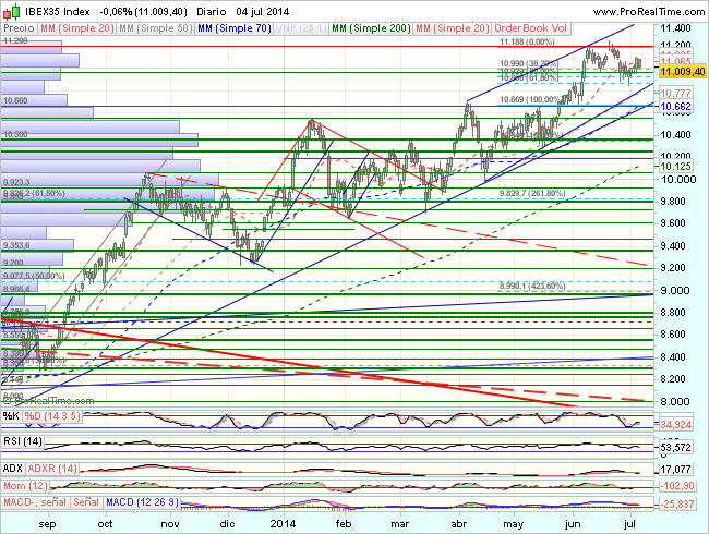 El Ibex sigue respetando el soporte en los 11.000 puntos y mientras no lo perfore, con un filtro a 10.875, lo mas probable, es que siga su camino en direccion a los 11.200 puntos.