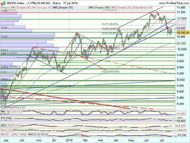 Por lo que se refiere al aspecto técnico del Ibex, en el medio plazo, desarrolla un impulso alcista, hasta los 11.200.