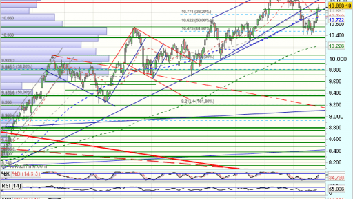 Por lo que se refiere al aspecto técnico del Ibex, en el medio plazo, desarrolla un impulso alcista, hasta los 11.200.