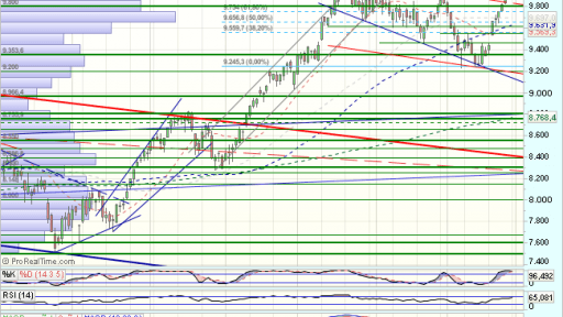 En el medio plazo, el Ibex tras superar el rango lateral, definiéndolo como de continuidad alcista, el techo del canal bajista de largo plazo, y la media de 200 sesiones, tanto en diario como en semanal, mantiene un impulso alcista canalizado que supera, el 61,8% de recuperación de toda la caída previa desde los 11.200 puntos, hasta encontrar obstáculos en los 10.063 que fuerzan una consolidación.