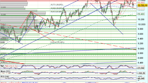 Las resistencias han impuesto su ley y el aspecto del Ibex, para el corto plazo empeora y estaremos atentos a la zona de los 10.700, cuya perdida aceleraria el movimiento correctivo