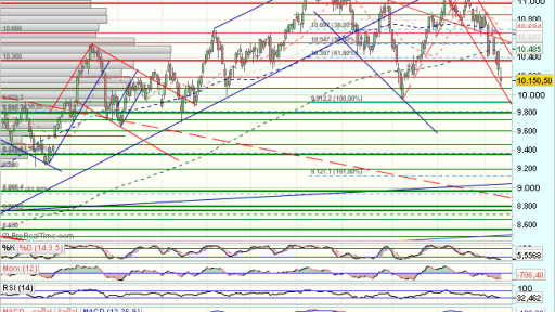 El Ibex sigue dando muestras de debilidad y confirma la perdida de la media de 200 sesiones si los 9.900 no aguantan, veremos acelerarse las caidas.