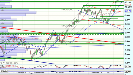 En el medio plazo, el Ibex, se mueve en un impulso alcista canalizado que supera, el 38,2% de recuperación de toda la caída previa desde los 16.000 puntos.
