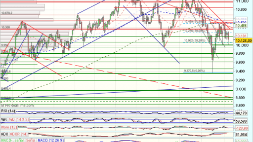 El Ibex, sigue dentro del rango lateral con techo en la media de 200 sesiones y resistencia en los 10.500puntos, mientras esta no sea superada, no veremos continuidad en las subidas.