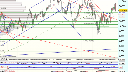 Por lo que se refiere al aspecto técnico del Ibex, en el medio plazo, desarrolla un impulso alcista, hasta los 11.200, que fuerzan una consolidación.
