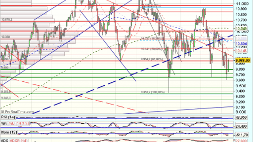 Nuevo bandazo, dentro del largo rango lateral del Ibex, que no cambia demasiado el aspecto tecnico, aunque es posible que el soporte de los 9.650 haya funcionado, no podremos confirarnos mientras no veamos precios como minimo sobre los 10.140 puntos.