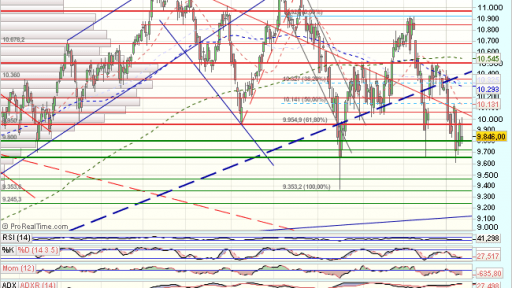 Nuevo bandazo, dentro del largo rango lateral del Ibex, que sigue siendo bajista en el corto plazo, estaremos atentos al soporte de los 9.650 puntos, cuya perdida romperia el lateral a la baja y aceleraria las caidas.