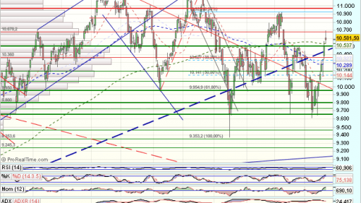 El mercado ya tiene lo que queria y el Ibex ha superado la resistencia clave de los 10.500 puntos y la media de 200 sesiones, y aunque nos deja un doji de indecision, es de esperar una continuidad de las alzas.