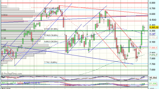 El Ibex 35, iniciaba la sesión bajo presión vendedora, aunque presionaron las compras en el entorno de los 8.250 puntos aminorando las perdidas, y terminaba cerrando con perdidas del 0,29%, en los 8.365,10 puntos, por encima del soporte relevante en los 8.300 puntos.