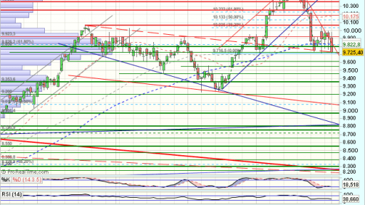 El Ibex cerraba la sesion , con fuertes perdidas del 1,96%% en los 9.725,40 puntos, amenazando nuevamente el soporte clave en los 9.720 puntos, cuya perdida supondria un grave deterioro técnico y llevaria al indice hacia los 9.350 – 9.200 puntos.