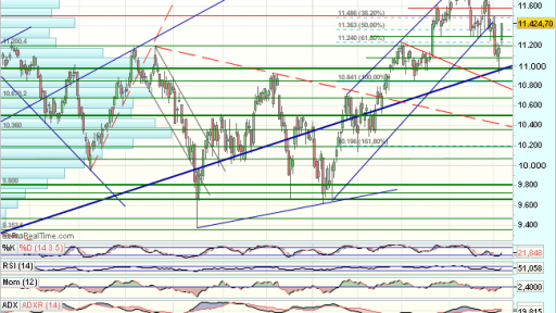 Por lo que se refiere al aspecto técnico del Ibex, en el medio plazo, tras encontrar soportes en los 6.738 puntos, desarrolla un impulso alcista, hasta los 11.200, que fuerzan una consolidación.