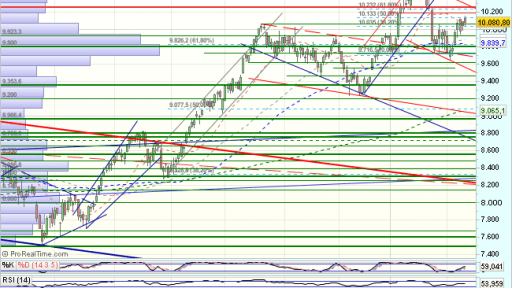 El Ibex cerraba la sesión, con perdidas del 0,10% en los 10.080,80 puntos, por encima de la resistencia relevante de los 10.065 puntos y que no cambia el aspecto tecnico del indice que sigue alcista, con objetivos en los 10.550 – 11.000 puntos.