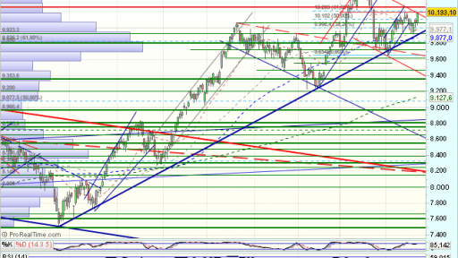 El cierre se ha hecho en maximos, por lo que es previsible que en próximas sesiones, confirme el nivel, dando continuidad alcista, con objetivos en los 10.550 – 11.000 puntos.