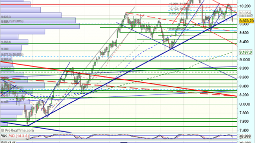 Los bajistas toman el control, y el ibex pierde la directriz alcista, con gap bajista empeorando notablemente su aspecto tecnico, en direccion a los 9.650 puntos.