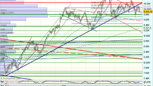 El aspecto técnico del Ibex empieza a ser preocupantemente lateral y debil, sin fuerza para superar la zona de resistencias clave hasta los 10.250 y prosigue su consolidacion a soportes en los 9.720 puntos.