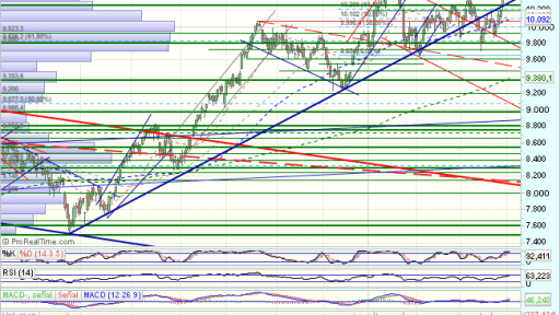 La sesión de hoy no cambia demasiado las cosas y mientras 10.360 actúe como soporte, seguirá el camino abierto, hacia los 10.550 puntos.