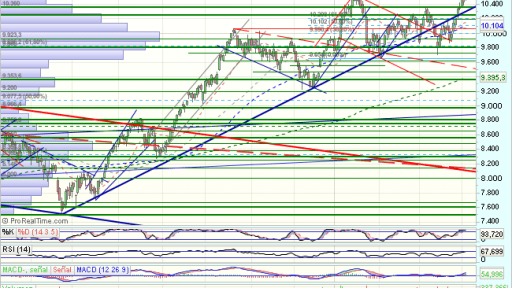 La sesión de hoy es una muestra de fortaleza y aunque no es descartable un throwback a soportes en proximas sesiones, el aspecto del Ibex es alcista con primeros objetivos en los 10.650 – 11.000 puntos.