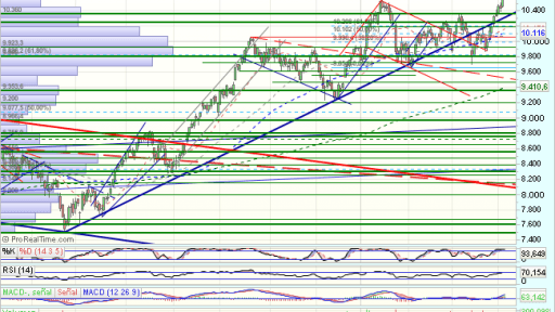 La sesión de hoy es una nueva muestra de fortaleza y aunque no es descartable un throwback a soportes en próximas sesiones, el aspecto del Ibex es alcista y una vez superados los 10.650 puntos, no existen resistencias significativas hasta los 11.000 puntos.