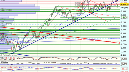 En las últimas sesiones, inicia una consolidacion, que encuentra apoyo en los 10.060 puntos, para un rebote, con primeros objetivos en los ……….Sigue en https://www.mercadosencontinuo.es/mapa