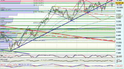El Ibex cerraba la sesión, con beneficioss del 1,63% en los 10.267,90 puntos, superando la resistencia relevante en los 10.250 puntos, en una sesion escasa de volumen.