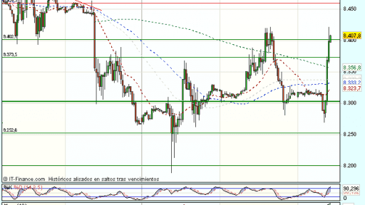 El Ibex 35 ha iniciado la sesión bajo presión vendedora aunque han aparecido con fuerza las compras en el entorno de los 8.270 puntos, que han llevado al índice a los números verdes y cotiza durante la sesión, con beneficios del 0,50%, hasta los 8.404,50 puntos, ampliamente por encima de la resistencia en los 8.300 puntos.