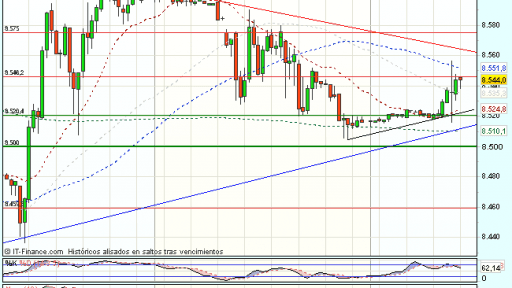 El Ibex 35 ha iniciado la sesión bajo ligera presión vendedora, a8nque se muestra indeciso, y cotiza durante la sesión prácticamente plano, con ganancias del 0,04%, hasta los 8.545,50 puntos. Respetando el nivel de los 8.500 puntos.
