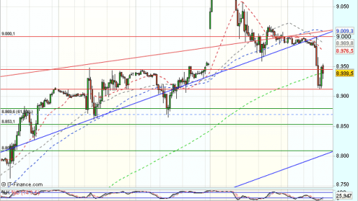 El Ibex 35 se encuentra bajo presión vendedora en la sesión de hoy, tras aparecer las ventas en la resistencia de los 9.075 puntos, y cotiza durante la jornada, con perdidas del 0,61% hasta los 8.944,50 puntos, tras encontrar apoyos en el nivel de los 8.900 puntos.