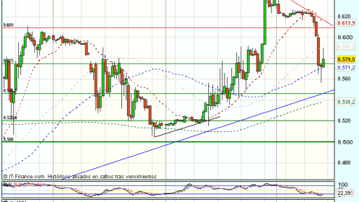 El Ibex 35 ha iniciado la sesión bajo ligera presión vendedora, aunque se muestra indeciso, y cotiza durante la sesión prácticamente plano, con perdidas del 0,03%, hasta los 8.579,50 puntos. Respetando el nivel de los 8.500 puntos.