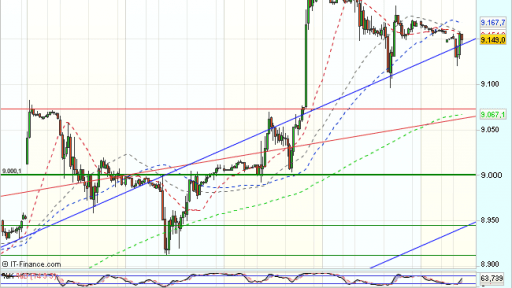 El Ibex 35 se encuentra volátil en la sesión de hoy, frenado ante la resistencia de los 9.200 puntos, aunque parece encontrar apoyos en los 9.120 y cotiza durante la jornada, prácticamente plano, con perdidas del 0,03% hasta los 9.150,50 puntos.