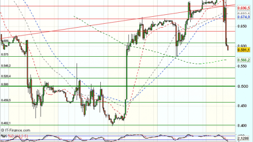 El Ibex 35 se encuentra bajo presión vendedora en la sesión de hoy, frenado ante la resistencia en los 8.750 puntos, y cotiza durante la jornada, prácticamente plano, con perdidas del 0,84%, hasta los 8.613,50 puntos, por encima del soporte de los 8.600 puntos.