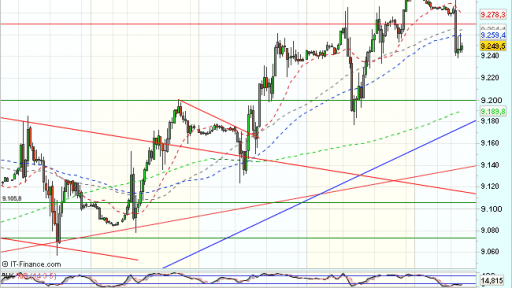 El Ibex 35 se encuentra bajo ligera presión vendedora en la sesión de hoy, frenado ante la resistencia de los 9.300 puntos, y cotiza durante la jornada, con perdidas del 0,24% hasta los 9.250,50 puntos.