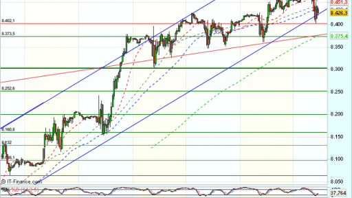 El Ibex 35 se encuentra bajo presión vendedora en la sesión de hoy, aunque aparecen compras ante el soporte de los 8.400 puntos, y cotiza durante la sesión, prácticamente plano con perdidas del 0,34%, hasta los 8.427,40 puntos.